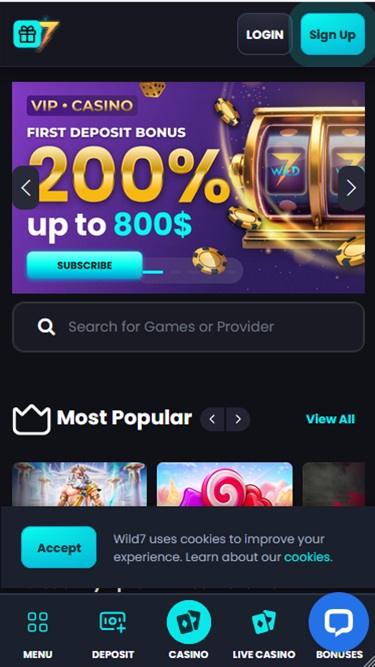 該賭場的網站支援多種世界語言,包括英語、西班牙語、法語、日語、葡萄牙語、俄語和中文,並採用了我們認為既實用又美觀的現代化圖形解決方案。 Wild7 的所有內容都井然有序、清晰明了且用戶友好。玩家可以輕鬆快速地找到自己喜歡的賭場遊戲。