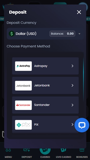 賭場收銀台支援多種常用付款方式,例如支付卡、熱門電子錢包和其他線上支付選項。遺憾的是,不支持加密貨幣。