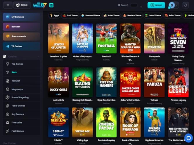 Wild7 賭場擁有超過三千款老虎機遊戲,其中包括適合各種玩家的精彩遊戲,無論其水平如何。系列既有經典老虎機遊戲,也有頂級新品,擁有豐富的轉軸設定、豐富的主題、卓越的音效設計、高品質的畫面等等。玩家可以享受各種娛樂內容,例如獎勵旋轉、分散符號、乘數、額外回合、百搭符號等等。