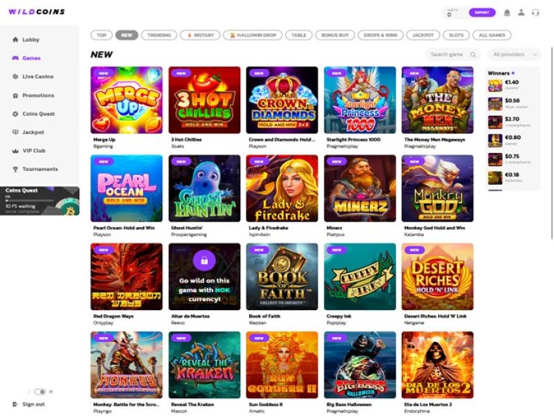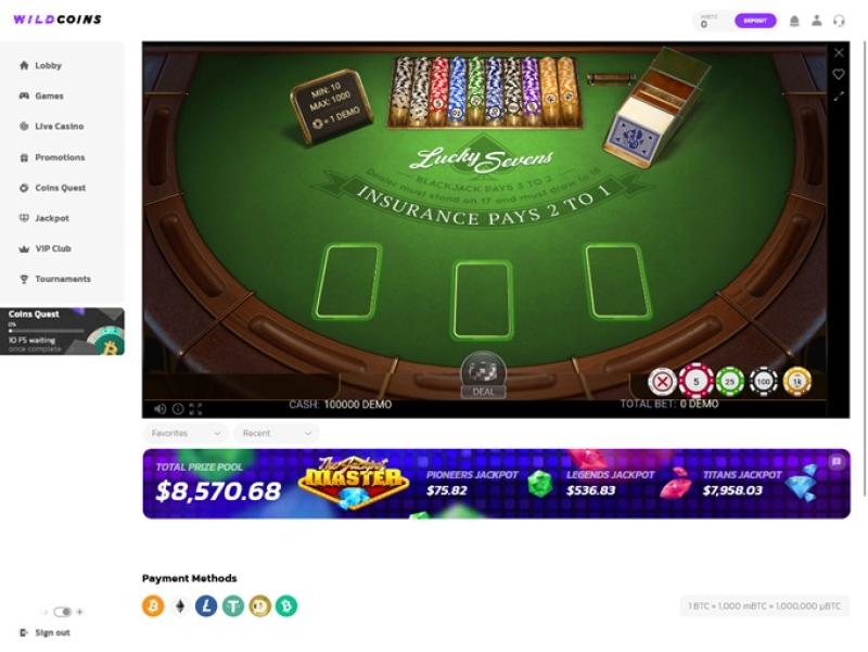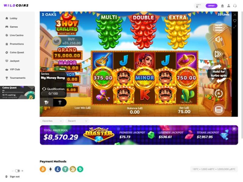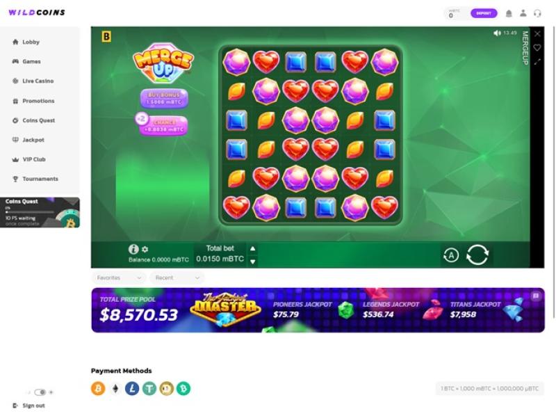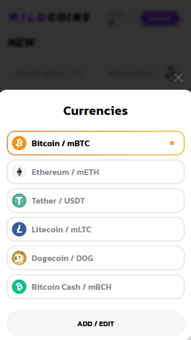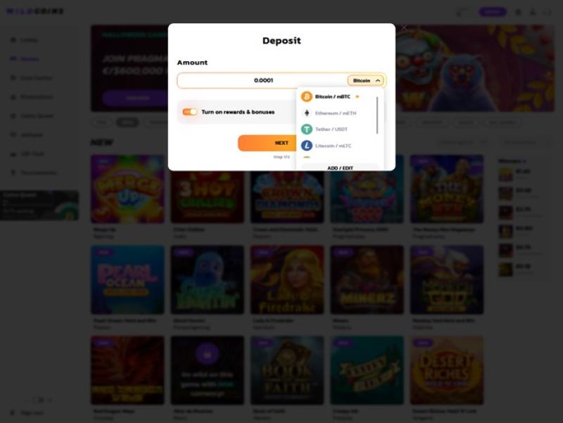 WildCoins 賭場提供多種加密貨幣儲值選項。玩家可以使用各種流行的加密貨幣支付方式進行即時存款和快速提現。