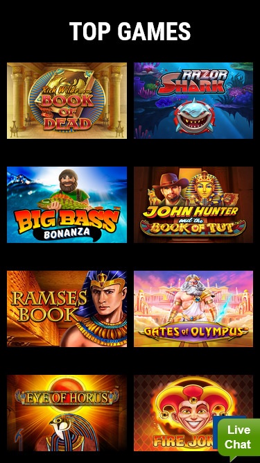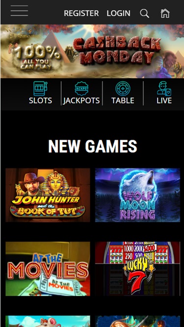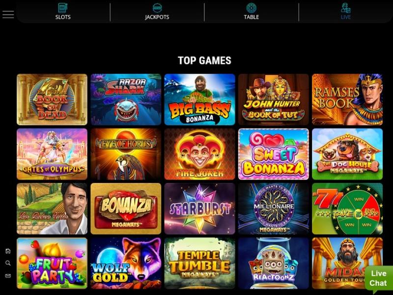賭場介面簡潔;黑色背景模板上,有一個埃及法老的大型橫幅,遊戲縮圖整齊地排列著。註冊過程很快,但總體印像是,營運商可以考慮對平台進行現代化升級,並添加更多設計更精良的功能。