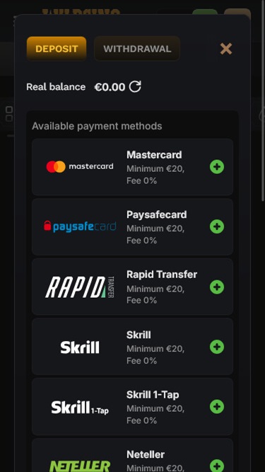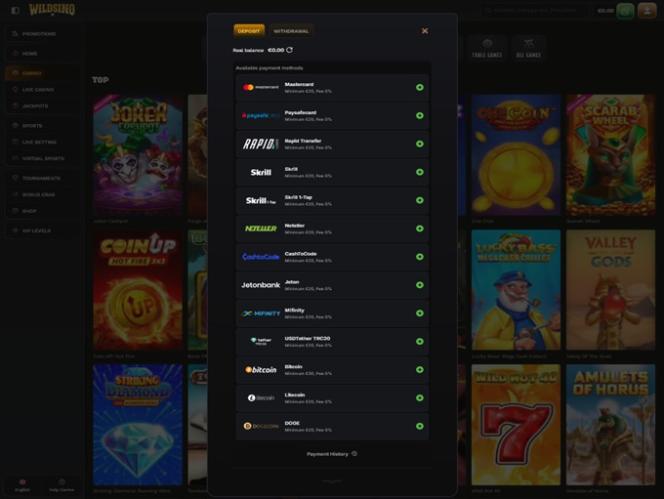 Banking銀⾏業務選項 的 Wildsino Casino