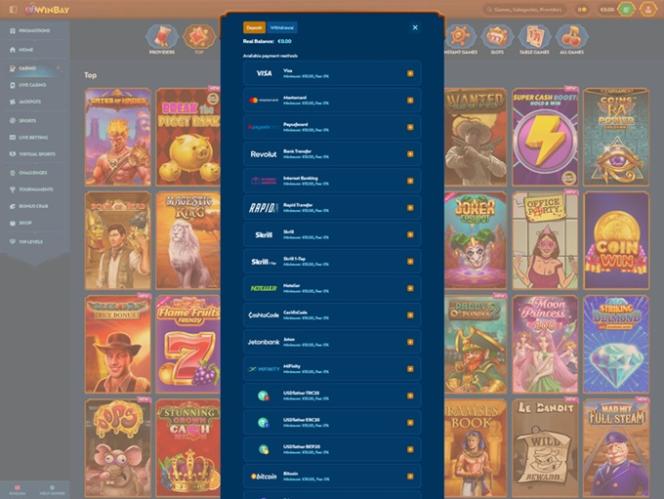 如果您剛註冊一個新帳戶,您就可以開始使用歡迎獎金安全地探索 Winbay Casino,而其他活躍玩家將可以享受各種重新加載、現金返還、錦標賽等。