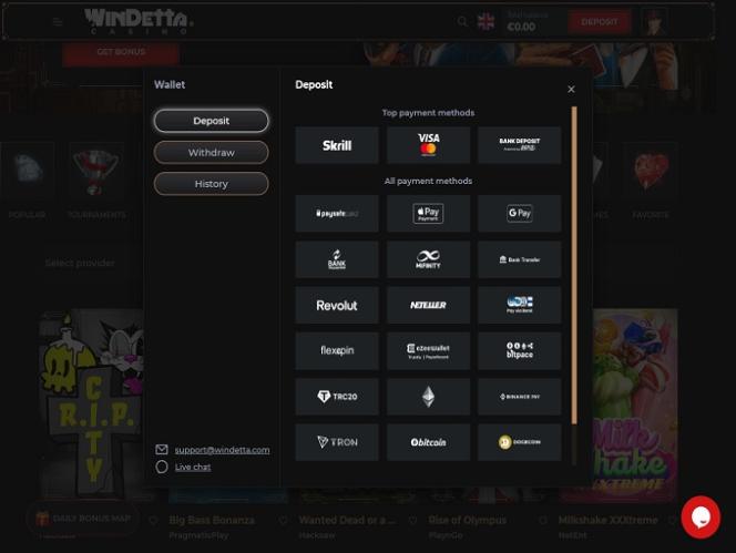Windetta Casino 是一家線上賭場,由一家根據庫拉索法律成立的公司擁有,持有 Antillephone NV 牌照。賭場的目標客戶是來自德國、奧地利、加拿大、西班牙和芬蘭的玩家,但這個有趣的線上賭博網站也可能吸引來自其他司法管轄區的玩家。