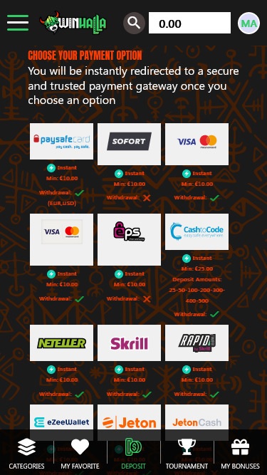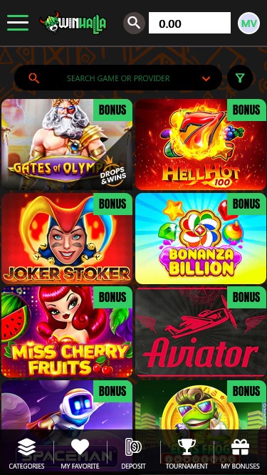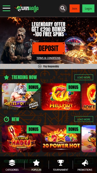 Winhalla 的賭場頁面針對桌面和行動裝置以及所有螢幕尺寸進行了最佳化。乍一看,這個網站看起來相當有趣,而且似乎提供的遊戲絕對是亮點。