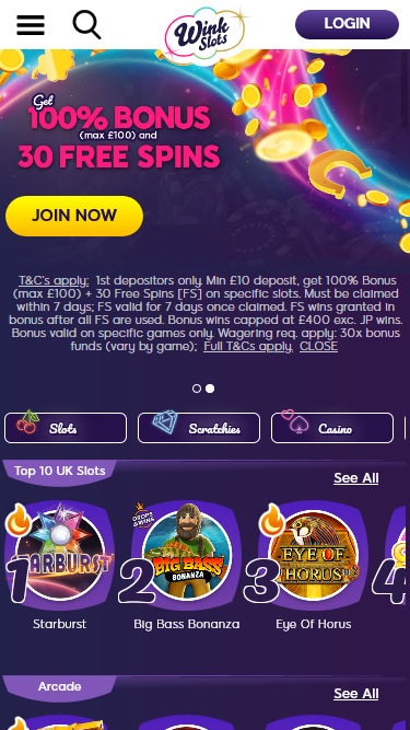 Wink Slots 的積分系統比較有趣,每下 16 英鎊即可獲得 1 點積分。不過,積分兌換率沒有列出,所以很難確定遊戲的整體狀況。