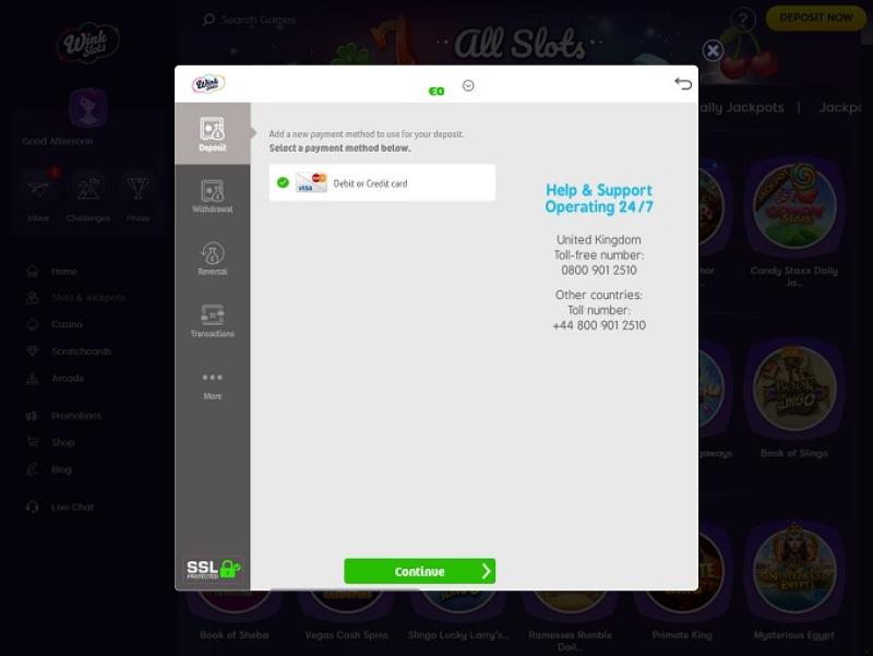 Wink Slots 網站設有「負責任博彩」版塊,玩家可以在此找到有關如何對抗問題賭博行為的資訊。此外,該網站還提供自我隔離和投注限額方面的幫助,這些都是所有博彩網站都應該為玩家提供的優質服務。客服人員每週 7 天、每天 24 小時透過電子郵件和電話提供客服支援。網站客服人員回覆幫助請求迅速,並解答了我遇到的所有與獎金條款和條件相關的問題。 Wink Slots 使用 128 位元 SSL 加密技術保護玩家訊息,該技術會在您的電腦和賭場伺服器之間傳輸您的個人和財務資料時對其進行加密。這是一項關鍵的安全功能,我們很高興看到 Wink Slots 為客戶提供這項服務。