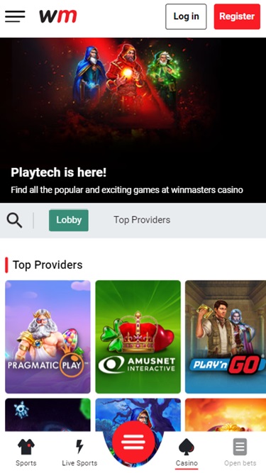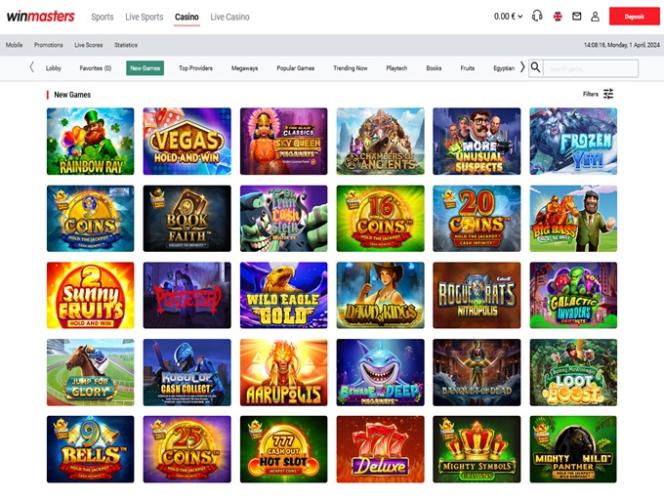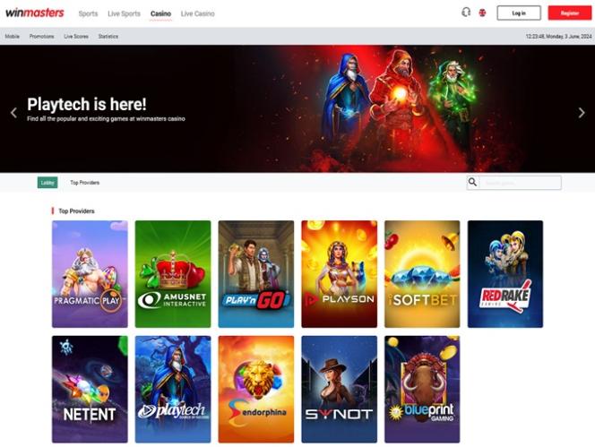 Winmasters Casino 由 Microgaming, Net Entertainment, Playtech, 1x2gaming, Big Time Gaming, ELK Studios, Evolution Gaming, Ezugi, Genesis Gaming, iSoftBet, lightningboxgames, Play'n GO, playson, Relax Gaming, Thunderkick, Endorphina, Wazdan, Realistic Games, Betgames, Booming Games, Stakelogic, Pragmatic Play, Nolimit City, Felt Gaming, Red Tiger Gaming, Red Rake Gaming, Skillzzgaming, Fantasma Games, SYNOT Games, Kalamba, Revolver Gaming, Skywind, Spinmatic, Spadegaming, Triple Edge Studios, Northern Lights Gaming, Stormcraft Studios, Switch Studios, OneTouch, Electric Elephant Games, Pocket Games Soft, Dreamtech Gaming, All41 Studios, Gluck Games, Gameburger Studios, Pulse 8 Studios, Neon Valley Studios, Golden Rock Studios, Spearhead Studios, Swintt, SpinPlay Games, HungryBear Gaming, Real Dealer Studios, GONG Gaming, Blue Guru Games, Lady Luck Games, Buck Stakes Entertainment, Games Global, Amusnet Interactive, Wizard Games, 2by2 Gaming, Ash Gaming, Blueprint Gaming, CT Interactive, Leander Games, Merkur Gaming, Pariplay, Push Gaming, Tom Horn Gaming, Reel Time Gaming, Authentic Gaming, BF Games, Bally Wulff, Iron Dog Studio, Old Skool Studios, Foxium, Just For The Win, Storm Gaming Technology, PearFiction Studios, Wild Streak Gaming, Slingshot Studios, Fortune Factory Studios, Jade Rabbit Gaming, STHLM Gaming, 4ThePlayer, Gamevy, Crazy Tooth Studio, ReelPlay, Zonelock, Alchemy Gaming, Rarestone Gaming, Plank Gaming, Black Pudding Games, Snowborn Games, Hacksaw Gaming, Max Win Gaming, Gold Coin Studios, Half Pixel Studios, SilverBack Gaming, Aurum Signature Studios, Armadillo Studios, FlipLuck, Area Vegas, Leap Gaming, GoldenRace, Kiron, Wishbone Games, LiveG24, Print Studios, HammerTime Games, Four Leaf Gaming, INO Games, Nailed It! Games, Live 5, Neko Games, Reel Kingdom, Oros Gaming and JVL提供支持,其賭場遊戲透過基於網路的平台以及行動網站提供。