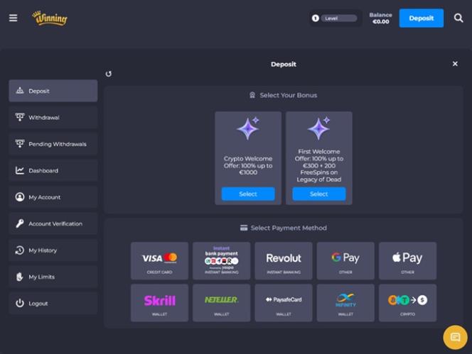 Winning 為賭場玩家和體育博彩玩家準備了誘人的促銷優惠。歡迎獎金專為新玩家準備,所有活躍會員均可享受真人娛樂場優惠和每週獎勵旋轉。