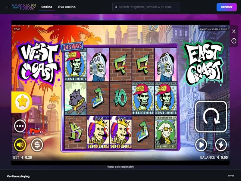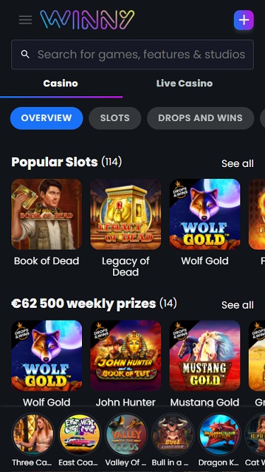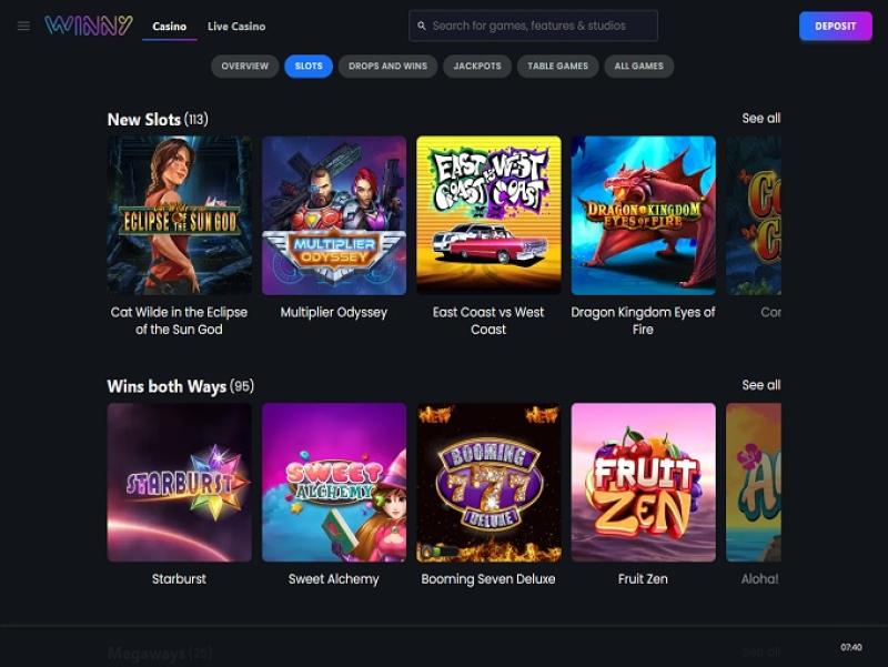 Winny 由 Microgaming, Net Entertainment, Playtech, BetSoft, 1x2gaming, Amatic Industries, Big Time Gaming, ELK Studios, Evolution Gaming, lightningboxgames, Novomatic, Play'n GO, playson, Quickspin, Rabcat, Relax Gaming, Thunderkick, Yggdrasil, Endorphina, Realistic Games, Betgames, Booming Games, Pragmatic Play, Nolimit City, Red Tiger Gaming, Red Rake Gaming, Skillzzgaming, Fantasma Games, Revolver Gaming, Triple Edge Studios, BGAMING, Northern Lights Gaming, Evoplay, Stormcraft Studios, Switch Studios, Electric Elephant Games, Bulletproof Games, All41 Studios, Gluck Games, Gameburger Studios, Pulse 8 Studios, Slot Factory, Neon Valley Studios, Golden Rock Studios, Spearhead Studios, Swintt, TrueLab Games, SpinPlay Games, HungryBear Gaming, Real Dealer Studios, GONG Gaming, Blue Guru Games, Holle Games, Buck Stakes Entertainment, Games Global, Ash Gaming, Greentube, Push Gaming, Tom Horn Gaming, Gamomat, Bally Wulff, Iron Dog Studio, Old Skool Studios, Foxium, PearFiction Studios, Wild Streak Gaming, Slingshot Studios, Golden Hero, 4ThePlayer, AvatarUX, Gamevy, Crazy Tooth Studio, Alchemy Gaming, Rarestone Gaming, Black Pudding Games, Snowborn Games, Boomerang Studios, Hacksaw Gaming, Max Win Gaming, Gold Coin Studios, Bang Bang Games, Half Pixel Studios, SilverBack Gaming, Peter And Sons, Aurum Signature Studios, Area Vegas, Wishbone Games, Circular Arrow, Print Studios, Gaming Corps, HammerTime Games, Four Leaf Gaming, INO Games, Nailed It! Games, Neko Games and Reel Kingdom提供支持,賭場擁有一個網頁平台,您可以透過網路瀏覽器存取。網站設計精良,我發現使用電腦瀏覽非常方便。賭場也支援行動端遊戲,您可以在智慧型手機或平板電腦上暢玩。