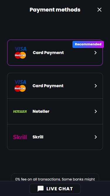 下面您將看到 Winny Casino 的不同銀行業務選項,包括存款和提款選擇。