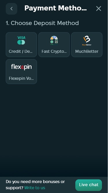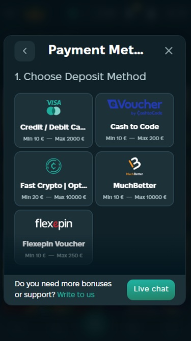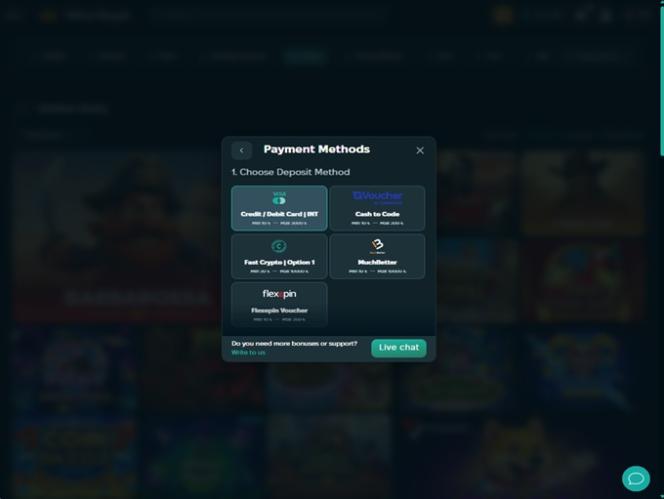 在銀行選項方面,您可以選擇使用 Visa、 MasterCard 、Skrill、Neteller、Ecopayz 和 Neosurf 等熱門方式在 Wins Royal Casino 存款或提款。加密貨幣支付也是一個可行的選擇,因為它已成為玩家存款和提款的一種非常流行的方式。