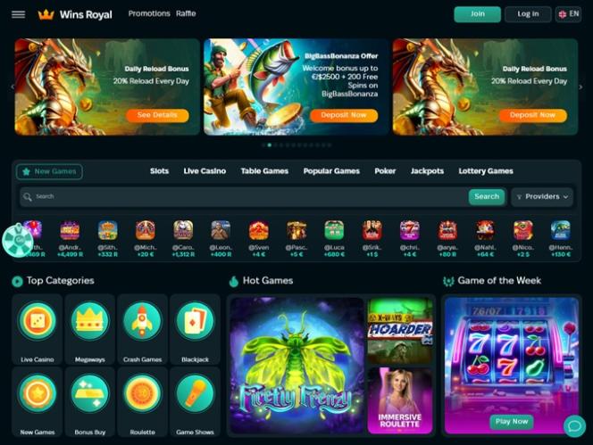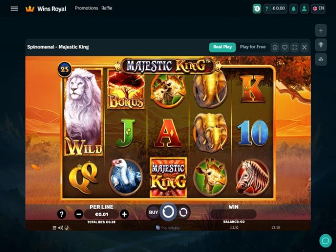 Wins Royal 提供一些超值的賭場獎金。玩家可以領取三倍機會迎新獎金、每周和每日免費旋轉、充值獎金以及每日現金回饋。