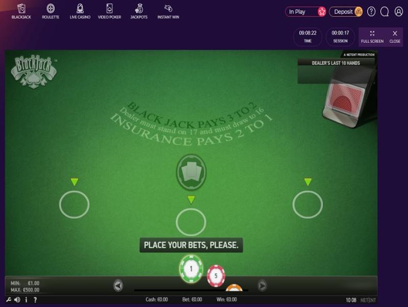 Net Entertainment按照1-2-3-10-20-100的⽀付列表、其賭場優勢為 2.16%. 對於side bet邊注、他們按照7-25的⽀付列表、其賭場優勢為 6.40%.