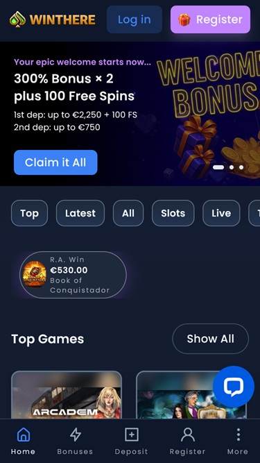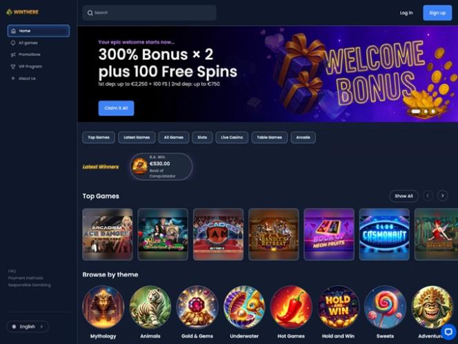 Winthere 是一個現代化的博彩網站,致力於為玩家提供難忘的博彩體驗,提供種類繁多的遊戲和活動,包括線上老虎機、真人荷官和桌面遊戲,以及大量的促銷和獎金。該品牌歡迎來自比利時、法國、英國、義大利、西班牙、澳洲、加拿大和荷蘭的玩家造訪其網站,並歡迎他們探索其提供的一切。