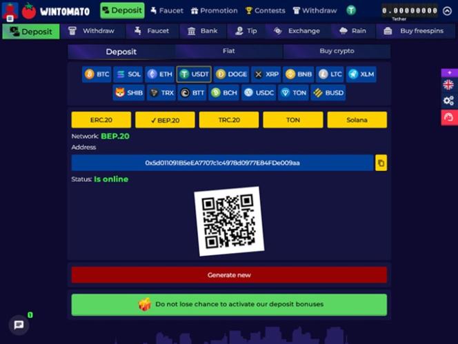 賭場的收銀台僅支援加密貨幣支付方式,並支援多種主流加密貨幣進行存款和提款。如果您尚未過渡到加密貨幣線上博彩,請注意,這裡不提供傳統的銀行服務。