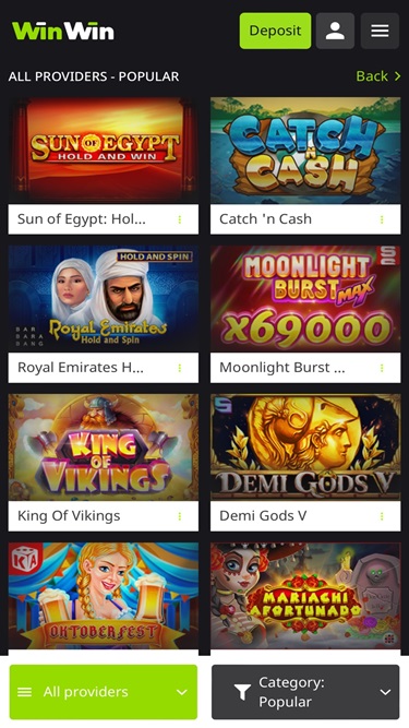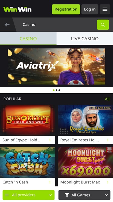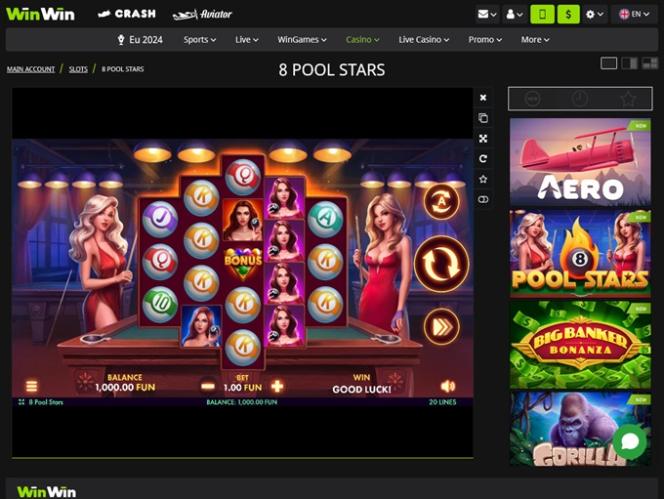 在這裡,一切都簡單明了。賭場平台的設計非常適合那些不追求華麗畫面和細節,而更注重探索遊戲或瀏覽體育賽事的玩家。像往常一樣,我們更注重賭場和真人娛樂場的服務,但值得一提的是,WinWin Casino 擁有豐富的熱門體育賽事選擇,是線上體育博彩玩家的理想之選。