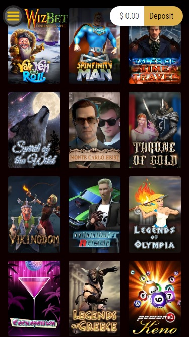 WizBet Casino 由 BetSoft, Rival and Saucify提供支持,其軟體既提供可下載版本,也提供即時遊戲模式。喜歡手機遊戲的玩家也會發現,WizBet Casino 擁有一個優秀的行動網站,提供約 30 款遊戲。其他遊戲