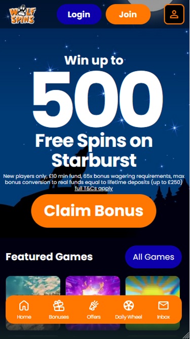 Wolf Spins 是一家線上賭場,致力於為玩家提供精彩的遊戲庫,其中包含數千款獨特的遊戲,包括線上老虎機、桌上遊戲、真人荷官、賓果遊戲和刮刮卡。憑藉豐富的娛樂選擇和大量促銷和獎金,難怪如此多的玩家蜂擁而至。