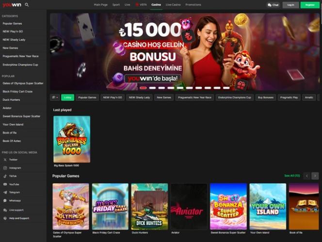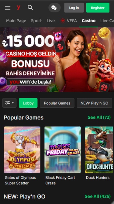 Youwin Casino 由 Microgaming, Net Entertainment, BetSoft, 1x2gaming, Big Time Gaming, Evolution Gaming, Ezugi, lightningboxgames, Play'n GO, playson, Quickspin, Rabcat, Relax Gaming, Thunderkick, Vivo Gaming, Yggdrasil, Betgames, Booming Games, Pragmatic Play, Nolimit City, Red Tiger Gaming, Booongo, LuckyStreak, Xprogaming, Triple Edge Studios, Switch Studios, Dreamtech Gaming, Bulletproof Games, Gluck Games, Gameburger Studios, Pulse 8 Studios, TrueLab Games, 7Mojos, Games Global, NextGen, Push Gaming, Iron Dog Studio, Old Skool Studios, Just For The Win, Reflex Gaming, Slingshot Studios, Jade Rabbit Gaming, 4ThePlayer, AvatarUX, Gamevy, ReelPlay, BB Games, Black Pudding Games, Boomerang Studios, Hacksaw Gaming, Max Win Gaming, Bang Bang Games, Peter And Sons, Aurum Signature Studios and LiveGames提供支持,其遊戲透過基於網頁的即時遊戲平台提供,玩家可以透過網路瀏覽器註冊、存款並暢玩。此外,該平台還支援行動端遊戲,玩家可以透過智慧型手機或平板電腦暢玩。Baccarat