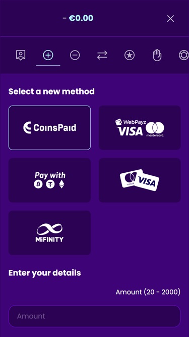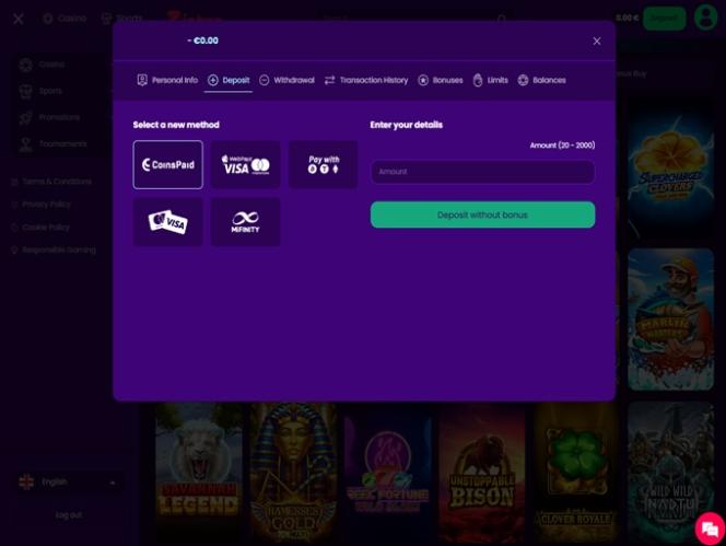 賭場出納員支援多種銀行業務方式。玩家可以使用多種直接銀行轉帳方式、可靠且受歡迎的電子錢包以及信用卡和金融卡。