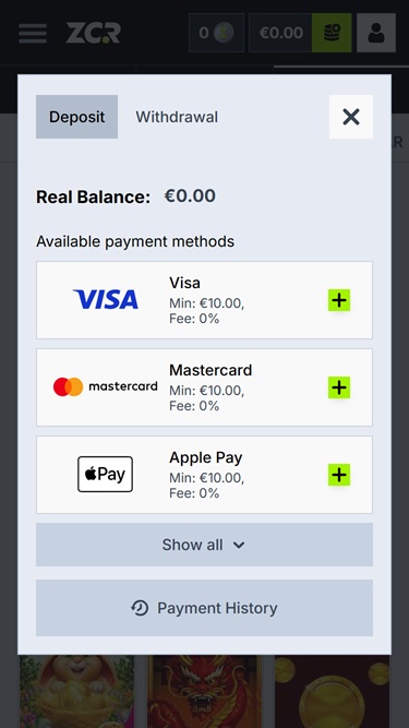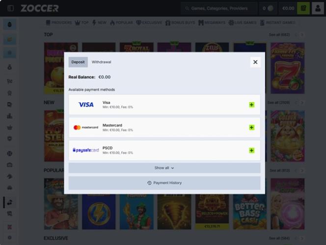 在存款和提款方面,Zoccer幾乎支援您能想到的所有支付方式。無論您喜歡銀行卡、電子錢包還是加密貨幣,您很快就能找到適合自己的選項。
