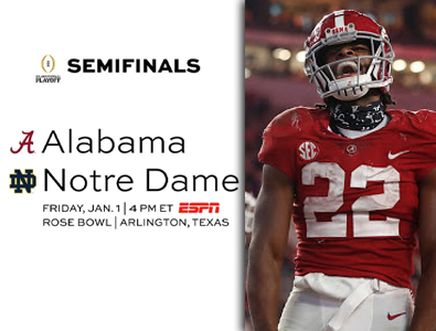 大學橄欖球季後賽半決賽玫瑰碗預告:阿拉巴馬大學對聖母大學