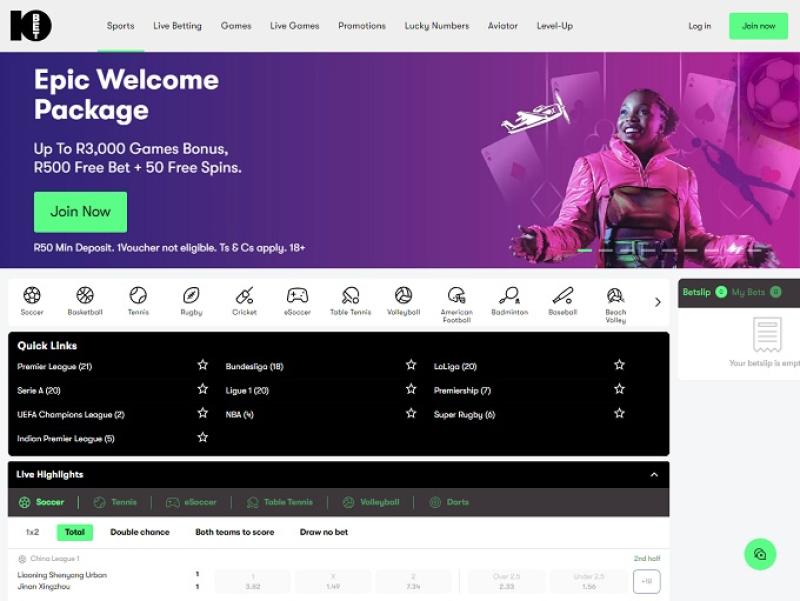 10bet Africa 擁有悠久的歷史和超過二十年的經驗,是南非玩家首選的運動博彩網站。該品牌提供豐富的體育博彩,涵蓋超過 60 種體育項目,提供優惠的賠率、豐富的投注選項以及即時投注功能。