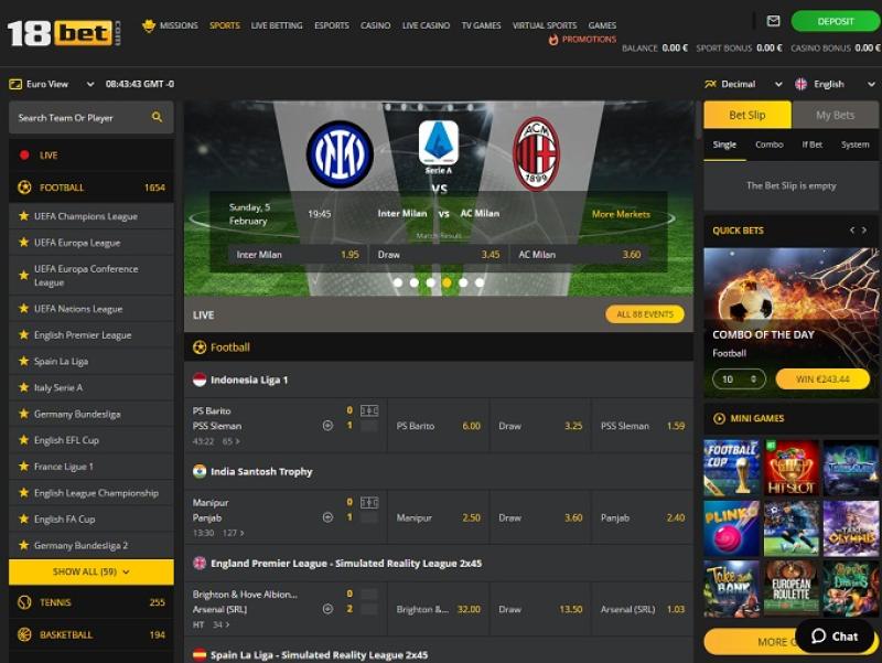 投注者將發現海量體育賽事,包括豐富的投注類型。您可以選擇歐洲或亞洲賽事的投注選項。