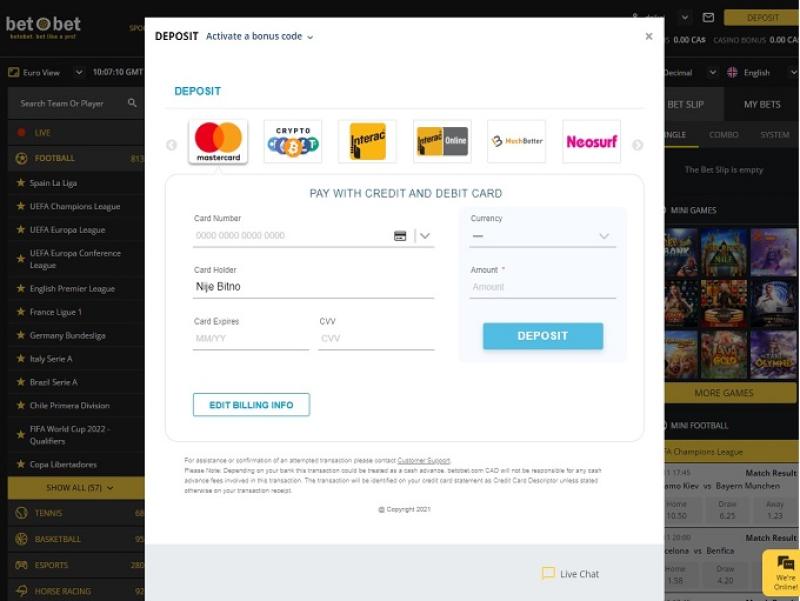 簡而言之,這家線上體育博彩提供者缺乏我們習以為常的許多經典標準。他們缺少我們習以為常的銀行選項,可供合作的軟體開發商種類也非常有限。賽馬比賽的種類非常有限,他們確實提供了賽馬的賠率,但我沒有看到任何賽狗比賽的賠率。遺憾的是,bet O bet 體育博彩沒有豐富的促銷活動供客戶利用。如果你是忠實客戶,很遺憾,他們沒有提供忠誠度計劃,儘管他們在網站的條款和條件部分提到了忠誠度計劃。總的來說,betObet 體育博彩應該在多個方面進行改進。