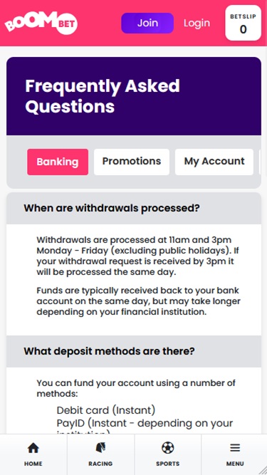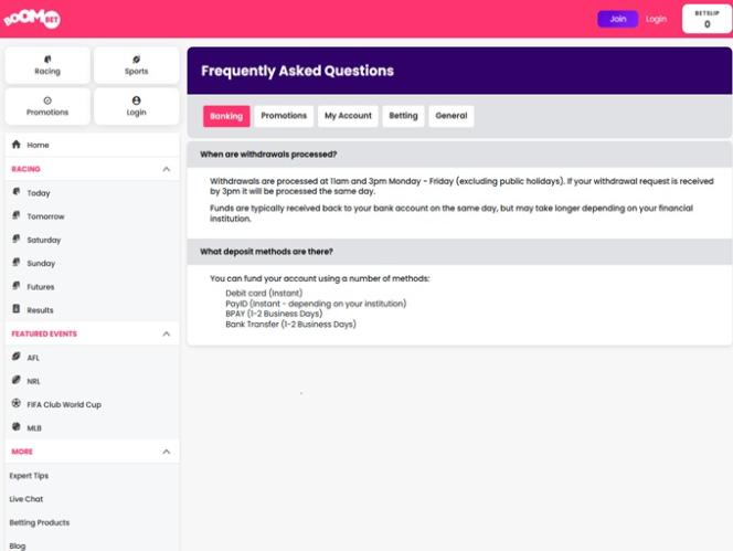 雖然 BoomBet 沒有提供最廣泛的銀行業務選項,但可用的方法在澳洲和紐西蘭玩家中很受歡迎,因此您很可能會找到適合您需求的付款方式。