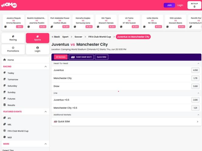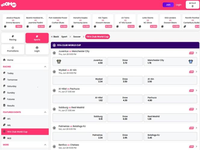 BoomBet 是一個著名的運動博彩網站,提供豐富的投注選項和體育賽事供玩家投注。其體育博彩平台規模龐大,提供數十種不同的體育和電子競技項目,但遺憾的是,在特定投注類型方面,其選項並不豐富。這個體育博彩網站主要接受來自澳洲和紐西蘭的玩家。