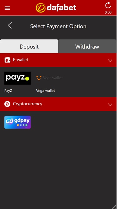 Dafabet 為玩家提供多種現代和傳統支付方式,包括存款和提款,包括信用卡、金融卡、預付卡、銀行電匯和電子錢包。該品牌還接受多種加密貨幣,因此那些喜歡更匿名、更安全的付款方式的玩家會感到滿意。