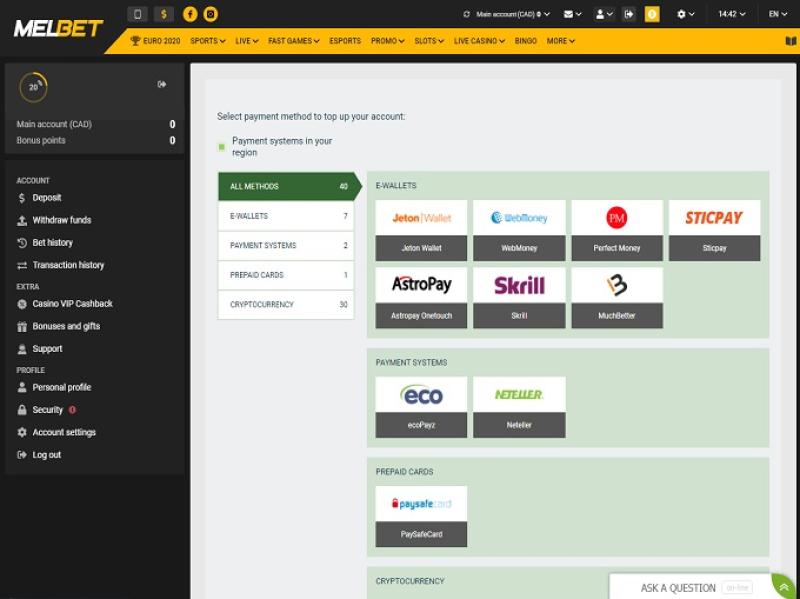 Banking銀⾏業務選項 的 MELBET Casino