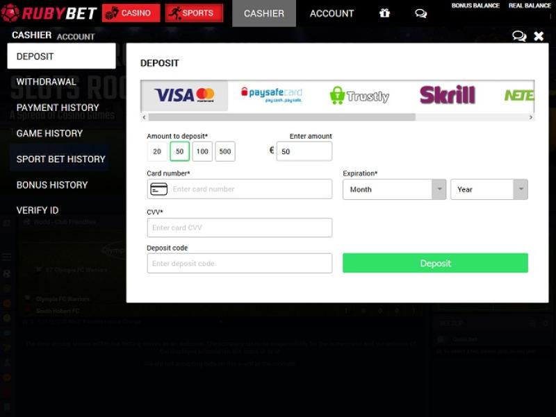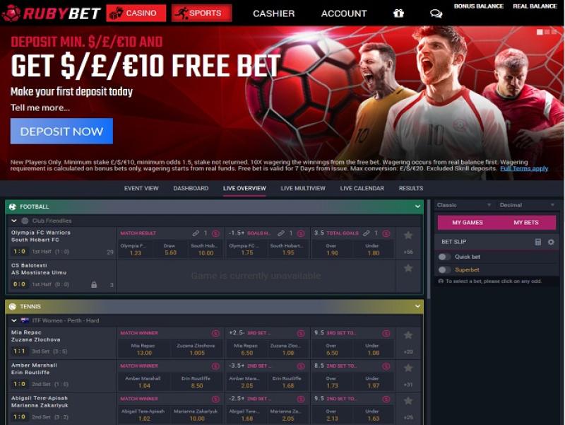 以下是在 2 種紅利獎⾦ 適⽤的 RubyBet Casino.