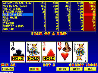 (為了證明這一點:正如您在我們測試運行的屏幕截圖中所看到的,我們最初有一對,這手牌甚至不在賠付表上,還有一張百搭牌,足以湊成三張同點牌;抽牌提供了第二張百搭牌,結果是四張同點牌。)