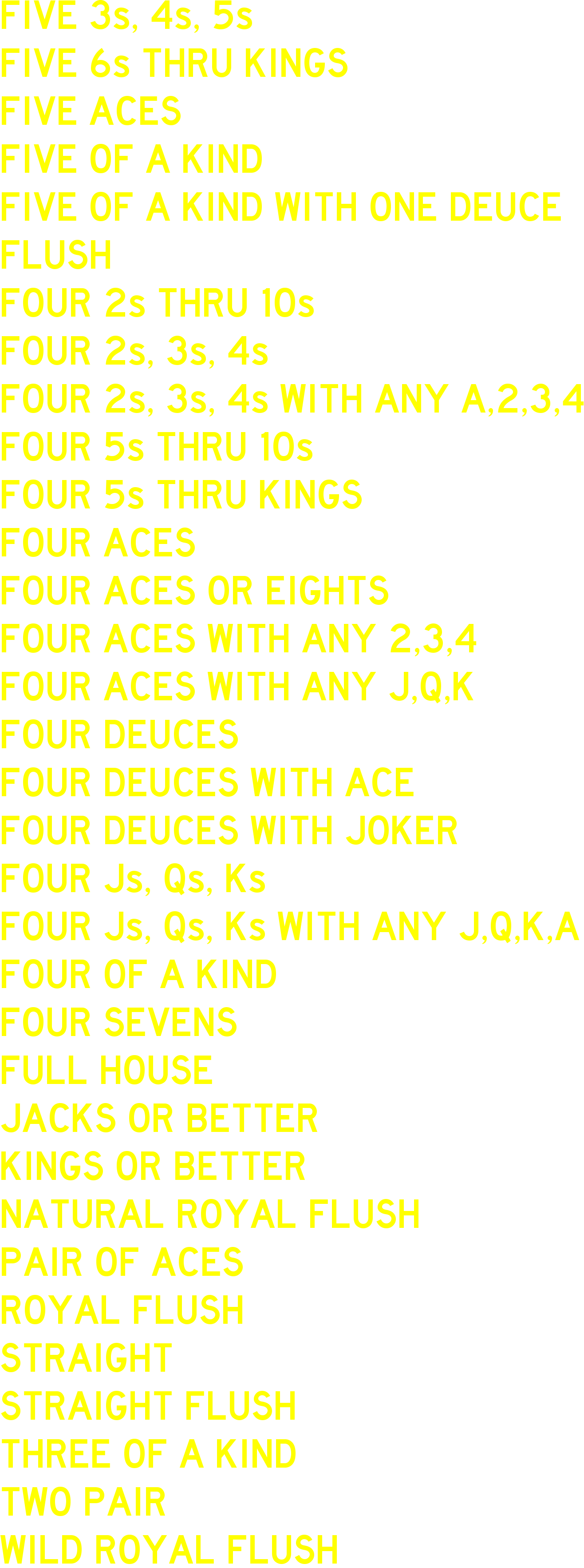 …賠償方式會以四種不同的方式遞增,獎勵您的四條。對於撲克全能選手來說,這就像四輪傳動車一樣,尤其是在最高賭注下,A四條的賠付比同花順更高!
