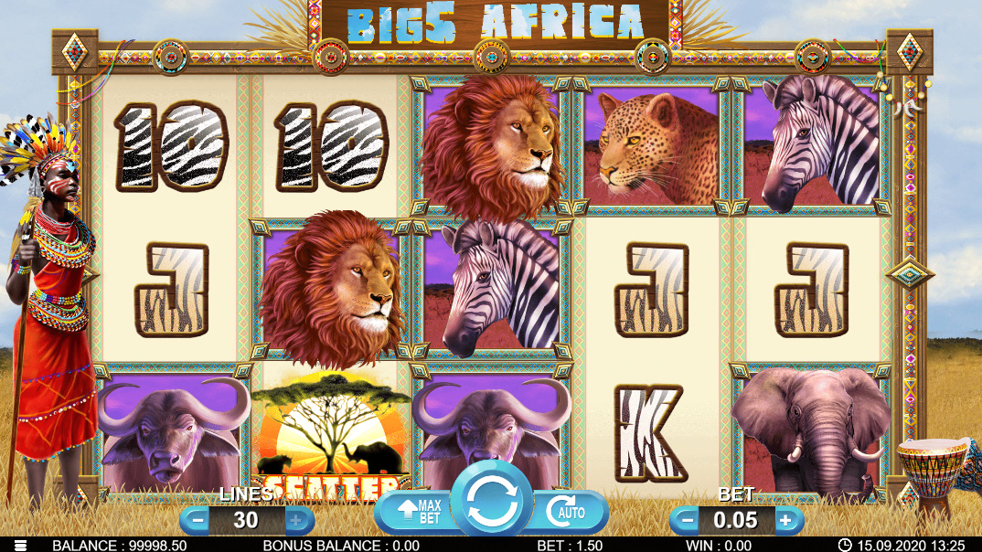 Big5 Africa 是一款視訊老虎機遊戲,於 2021 年 2 月 1 日發布,採用 5x3 轉軸設定和 30 條支付線,帶您深入探索非洲大草原。該老虎機的玩家回報率 (RTP) 為 95.24%,命中率較低,波動性中等偏高,因此預期贏獎次數較少,但一旦中獎,賠付金額也較大。