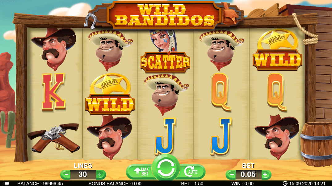Wild Bandidos 是一款 5x3 轉軸和 30 條賠付線的視訊老虎機,於 2021 年 2 月 1 日上市。遊戲玩家回報率 (RTP) 高達 95.01%,且命中率極高,但電子版宣傳資料中並未透露具體命中率或賠付頻率。其命中率、玩家回報率和較低的波動性使其成為喜歡頻繁贏錢的玩家的理想選擇,即使他們的賠付水平處於中低水平。由於波動性較低,賠付金額通常較小,但賠付頻率較高,確保玩家的持續性。