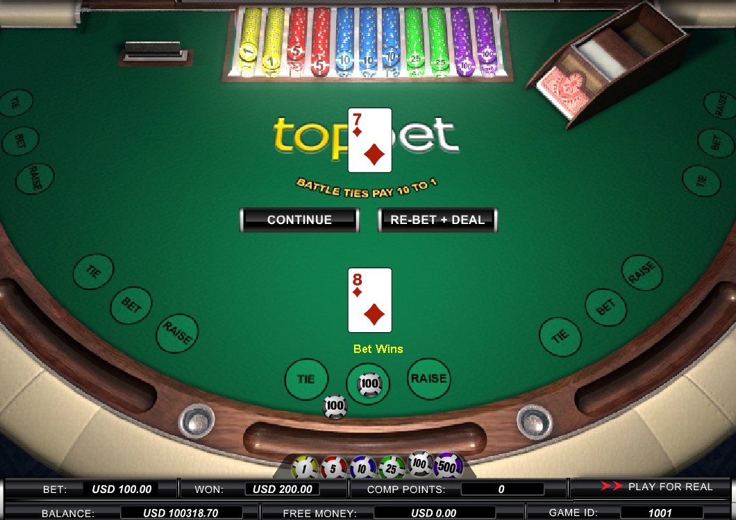 Ace Gaming 把他們的賭場戰爭遊戲簡稱為「戰爭」。他們遵循一條嚴格的規則:平手後不支付獎金。假設六副牌,賭場優勢為 2.88%。