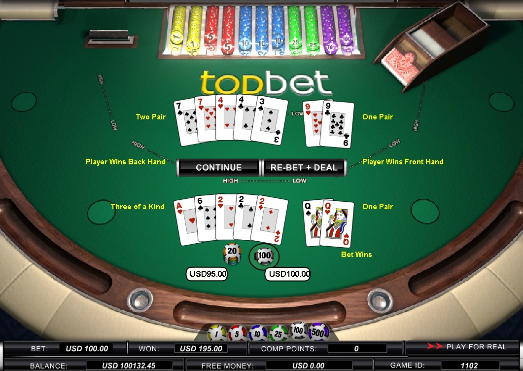 牌九撲克有兩款遊戲,唯一的差別在於附加註。牌九撲克的規則與網路賭場的規則一致-5% 佣金,且不設玩家投注。因此,賭場優勢為 2.72%。