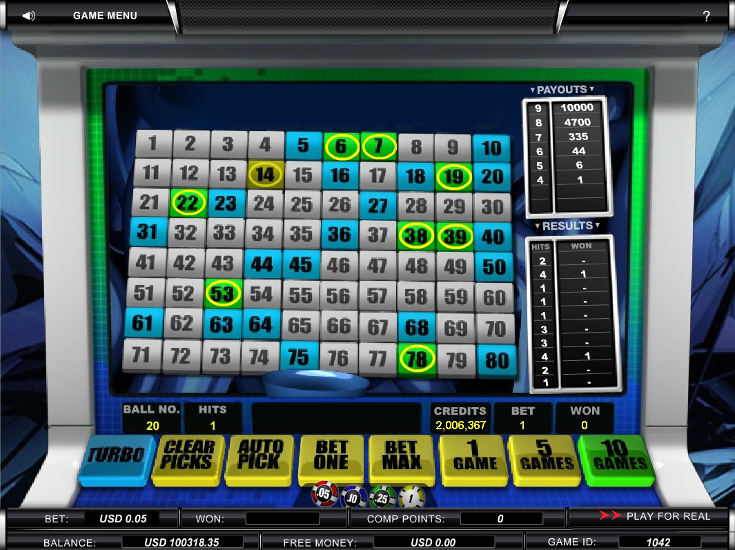 Ace Gaming 有兩款基諾遊戲——傳統基諾和 Shockwave。以下是傳統基諾的賠率表。回報顯示在最下面一行。如您所見,最高的回報是 Pick 3,高達 92.96%。
