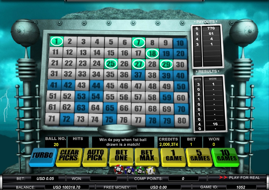 另一款基諾遊戲名為「衝擊波」(Shockwave)。如果第一個球中獎,所有獎金將乘以四。換句話說,它與“強力基諾”(Power Keno)類似,只是倍數是基於第一個球,而不是最後一個球。下表顯示了賠付表和底行的返還金額。如您所見,返還金額不如傳統基諾高。如果您必須玩,最高返還金額為「選二」(Pick 2)的 90.57%。