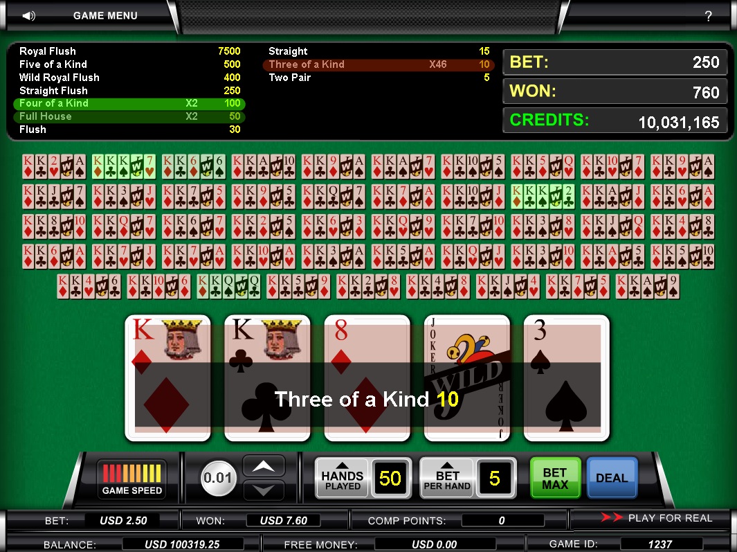 遊戲 | 回報率 | Power Poker威力撲克 | 支付列表 | 即時遊戲 |