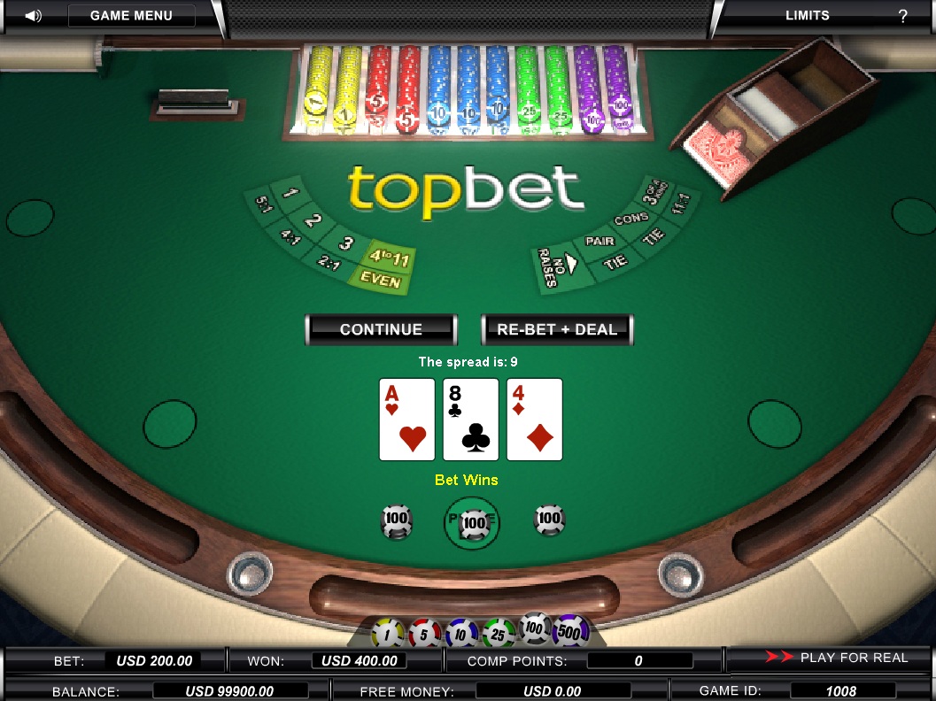 太好了,又有一家軟體供應商提供「紅狗」遊戲,這款桌上遊戲30年前在實體賭場就消失了。這款遊戲遵循標準規則。假設有六副牌(我不知道具體數字),賭場優勢是2.80%。