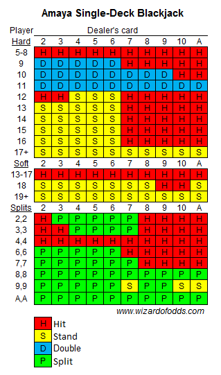 作為最好的 Amaya 二十一點遊戲,它值得擁有一個基本策略圖表,如下所示。
