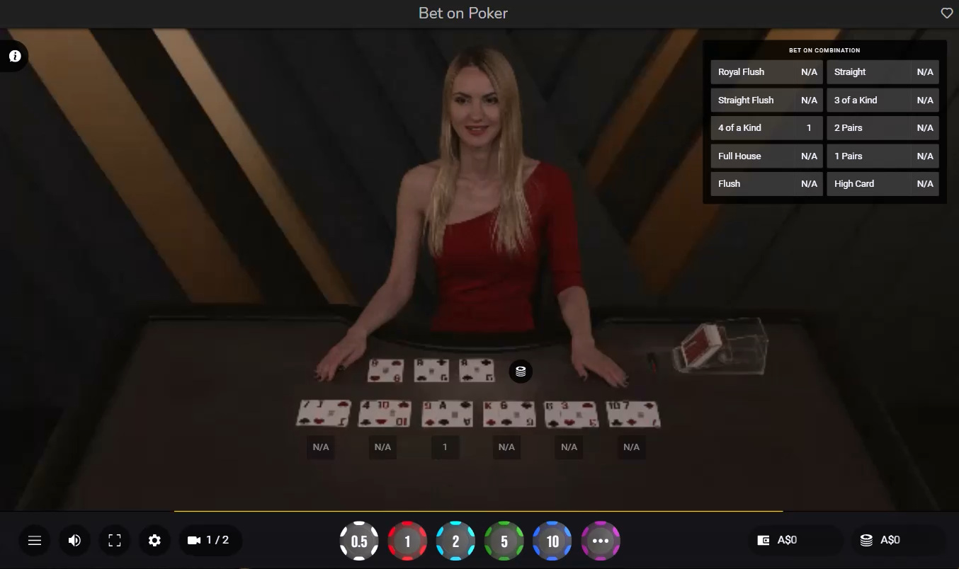 Atmosfera 是少數提供撲克投注服務的供應商之一。撲克投注是一款由真人荷官進行四到九手德州撲克遊戲。玩家的目標是押注哪個位置會獲勝以及獲勝的牌型是什麼。