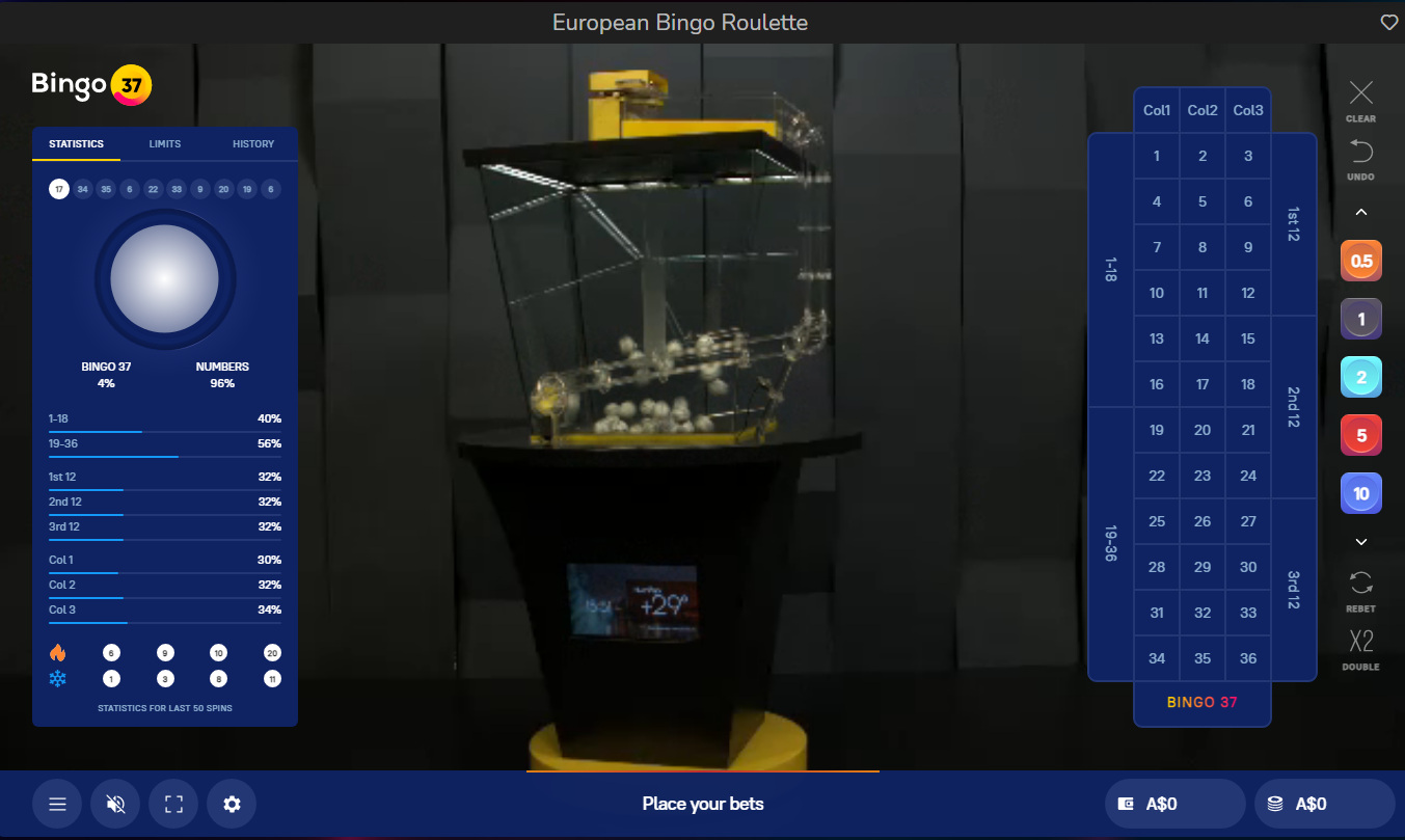 - 歐洲賓果輪盤賭(European Bingo Roulette)-玩法是從37個自動球鬥中抽取一球。賭場優勢為2.70%。