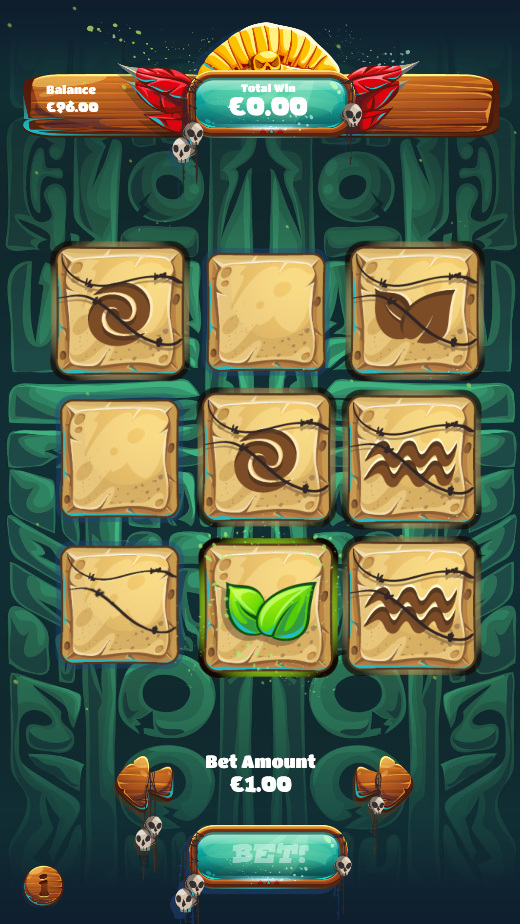 薩滿叢林就像一款刮刮卡遊戲,玩家在3x3的格子中選擇三個方格。如果某些符號被選中2次或3次,玩家就贏了。這似乎帶有自由意志的成分,因此根據我上面的定義,它並非「老虎機」。然而,它完全不涉及技巧,因此簡單到可以稱之為“老虎機”。遊戲沒有提供任何關於回報的資訊。