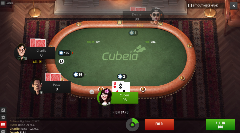 Cubeia 網站上顯示他們提供一款名為「全押或棄牌」的玩家對戰撲克遊戲,顯然就是這樣的。該遊戲只允許「全押」下注,並且所有下注都在翻牌前進行。真有趣!這可是個很有挑戰性的數學分析題。
